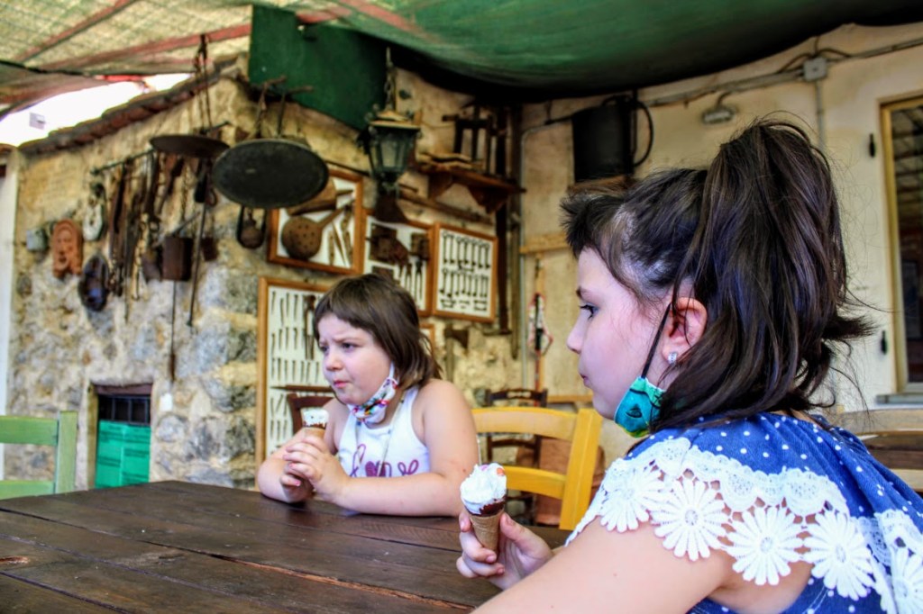 Se poi la fame vi assale niente paura, nel cuore del borgo c’è un alimentari ben fornito con tanto di terrazza con vista che vi propone piatti insalatone, piatti freddi e, come vedete, gustosi gelati.