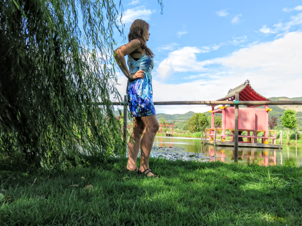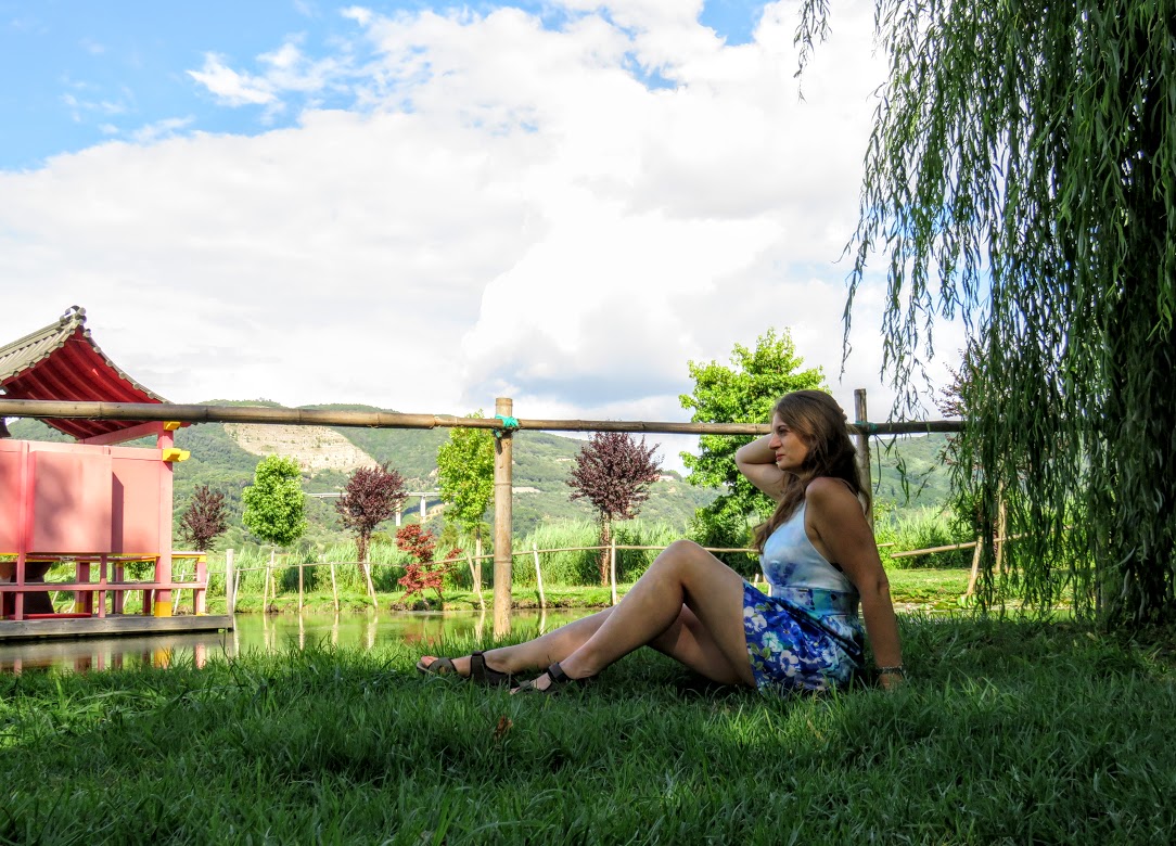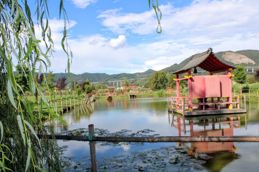 Percorrendo il viale sterrato si arriva al Tempio Buddista Shintoista galleggiante, circondato da splendide ninfee in fiore.
