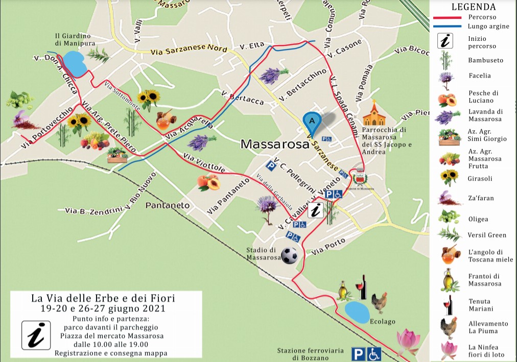 La Via delle Erbe e dei Fiori è un percorso di 5 chilometri da fare a piedi o in bicicletta che si snoda fra erbe aromatiche, fattorie, aziende agricole e florovivaistiche e tratti che costeggiano suggestivi specchi d’acqua e paesaggi naturalistici mozzafiato.