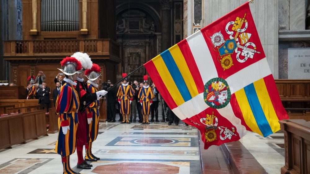 He presides over the ceremonies that take place in the hall of Paul VI and in St. Peter’s Basilica. The Swiss Guard also protects the college of cardinals after the death of the pope and pending the outcome of the new conclave.