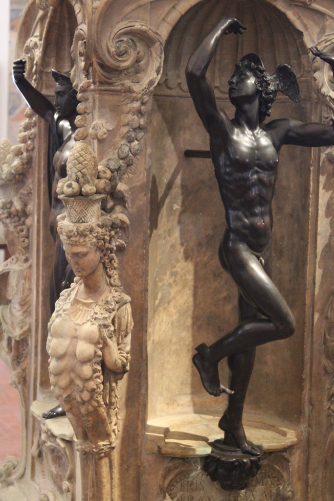 The Perseus, on the other hand, was made in a single fusion if we exclude some details applied later. It was a complicated job, made even more difficult by the size of the work. The complicated fusion was then recounted in detail by Cellini in his autobiography in a very realistic way, so much so that reading it seems to feel the heat of the furnace.