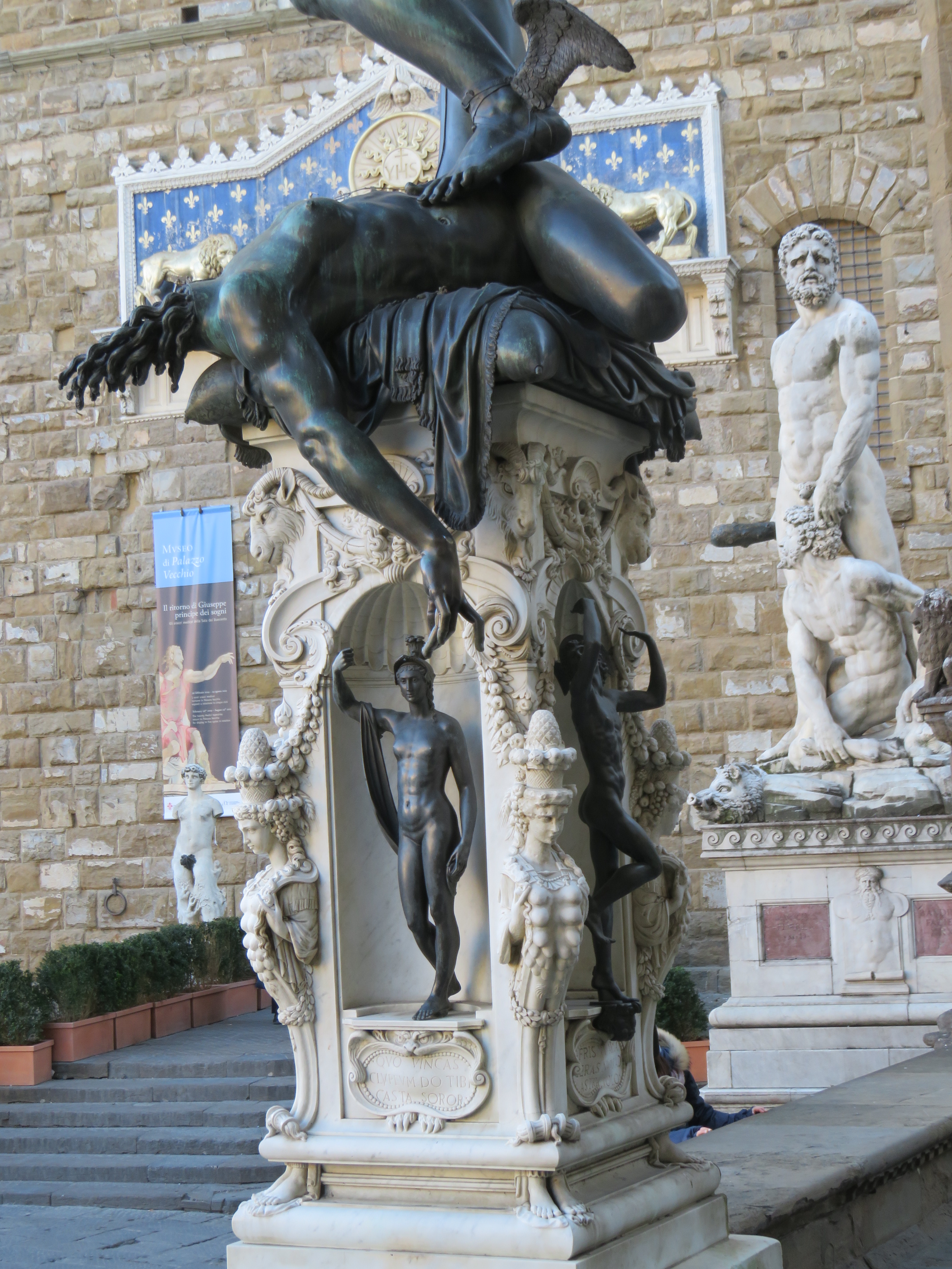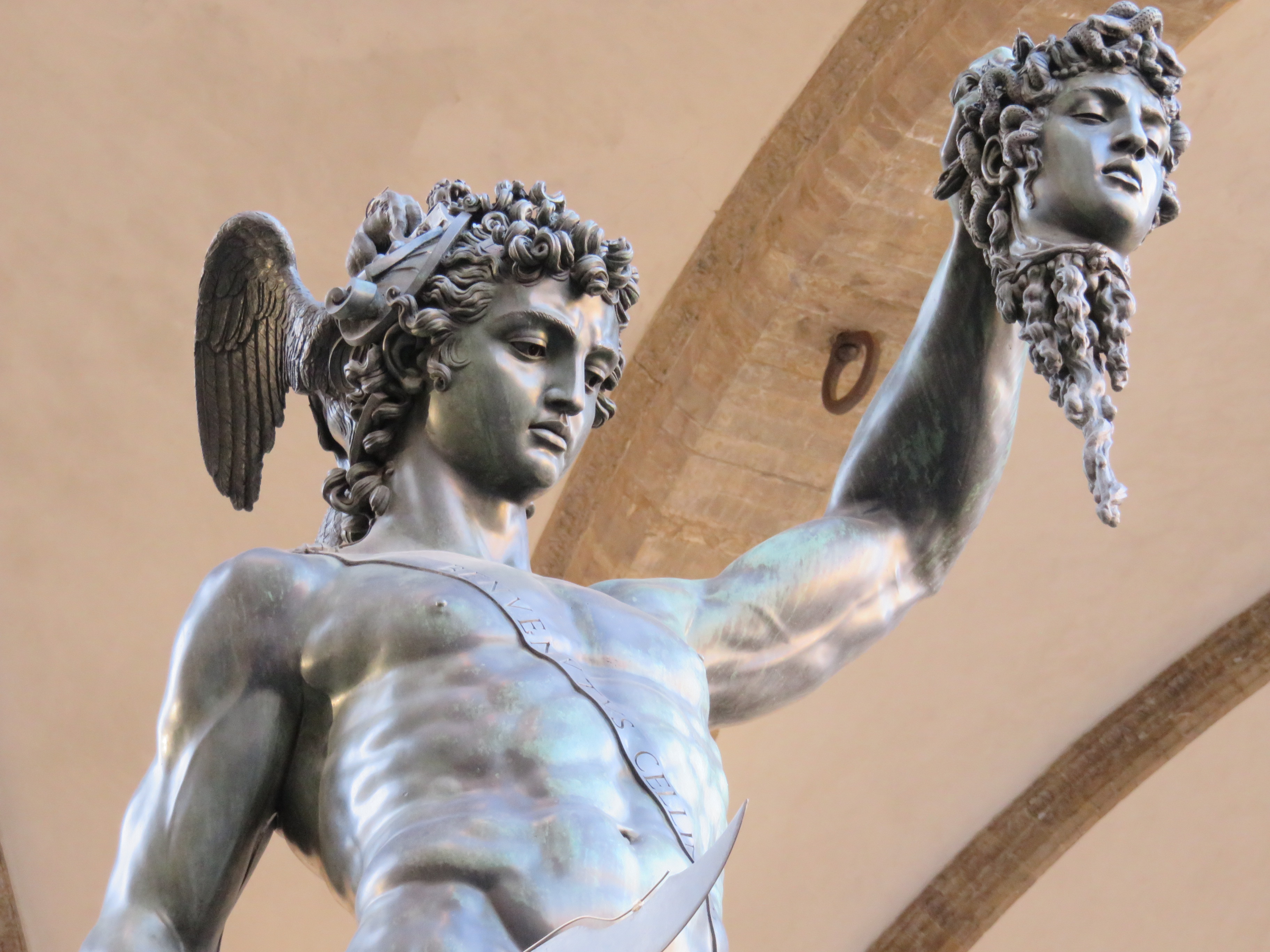 Da secoli il Perseo del Cellini se ne sta lì davanti alla Loggia dei Lanzi mostrando nella mano sinistra la testa appena mozzata di Medusa e nell’altra la spada sguainata.