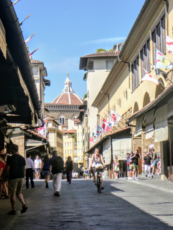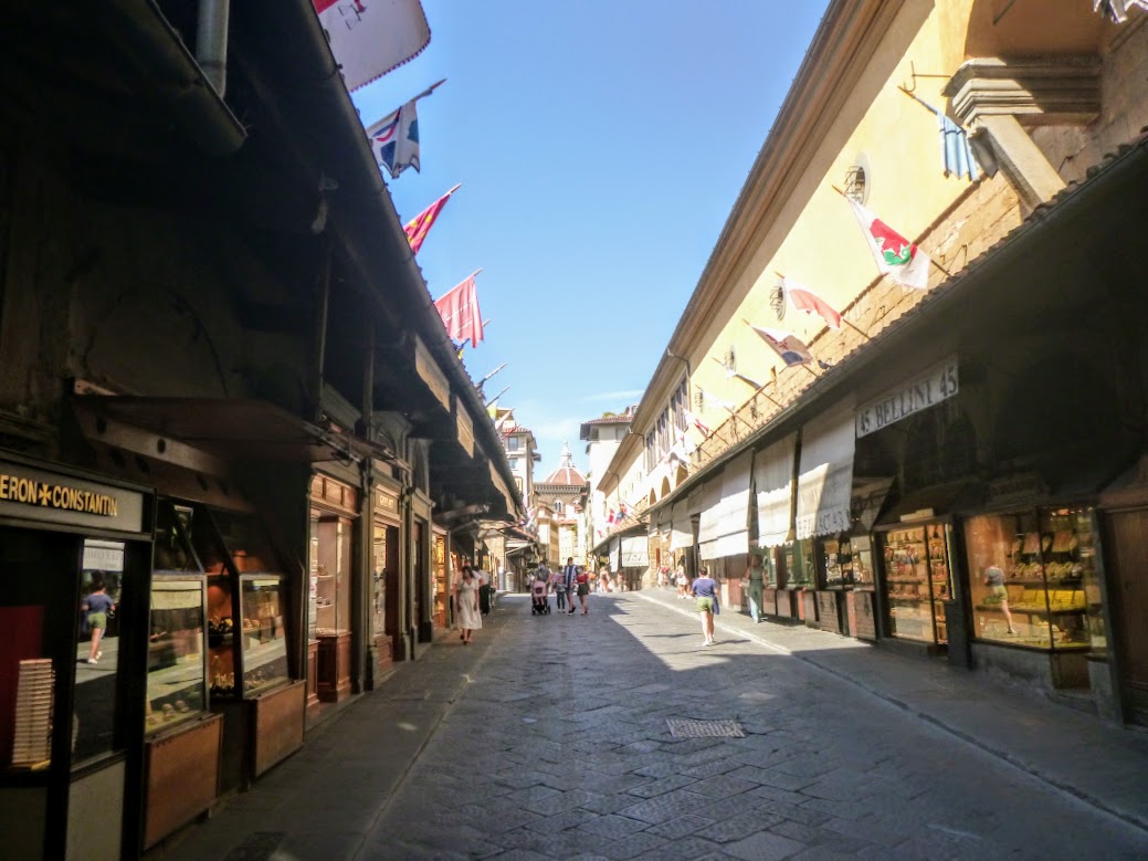 A distanza di tanti secoli, ancora oggi le botteghe orafe e i gioiellieri espongono i loro gioielli in quelle vetrine e teche in legno che si affacciano su Ponte Vecchio.