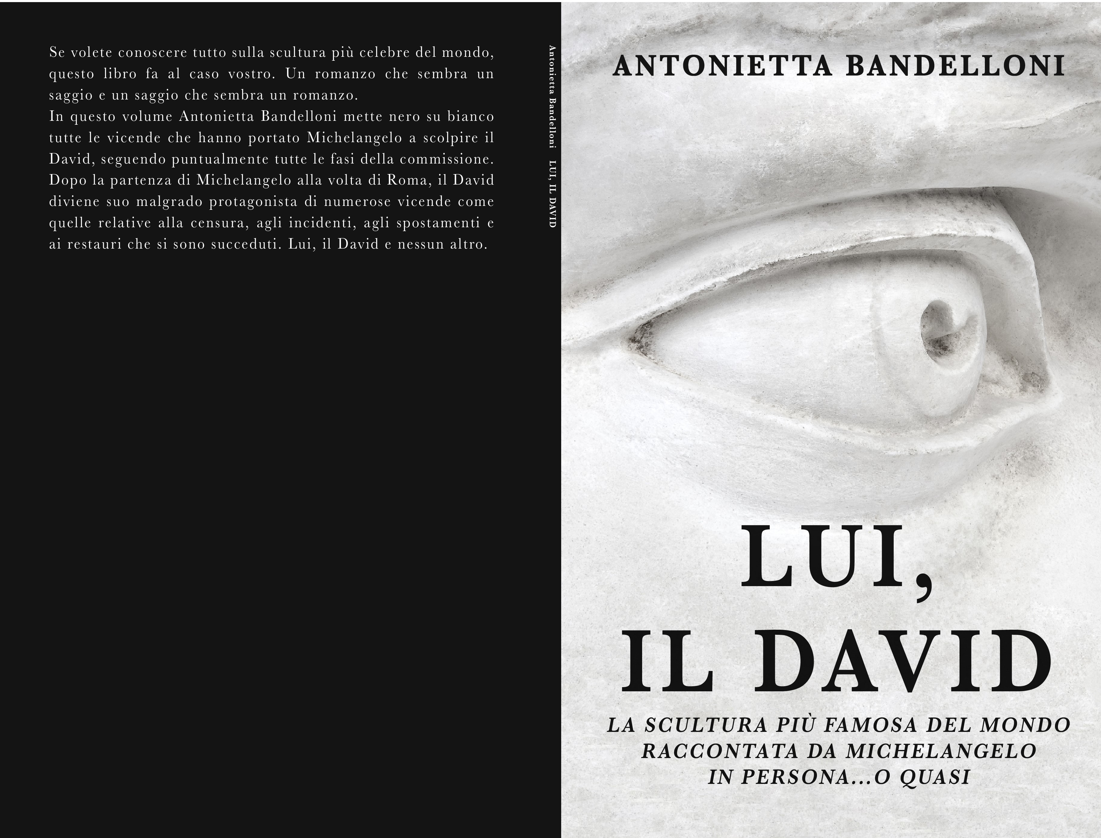 Se volete conoscere tutto sulla scultura più celebre del mondo, questo libro fa al caso vostro. Un romanzo che sembra un saggio e un saggio che sembra un romanzo. In questo volume Antonietta Bandelloni mette nero su bianco tutte le vicende che hanno portato Michelangelo a scolpire il David, seguendo puntualmente tutte le fasi della commissione. Dopo la partenza di Michelangelo alla volta di Roma, il David diviene suo malgrado protagonista di numerose vicende come quelle relative alla censura, agli incidenti, agli spostamenti e ai restauri che si sono succeduti. Lui, il David e nessun altro.
