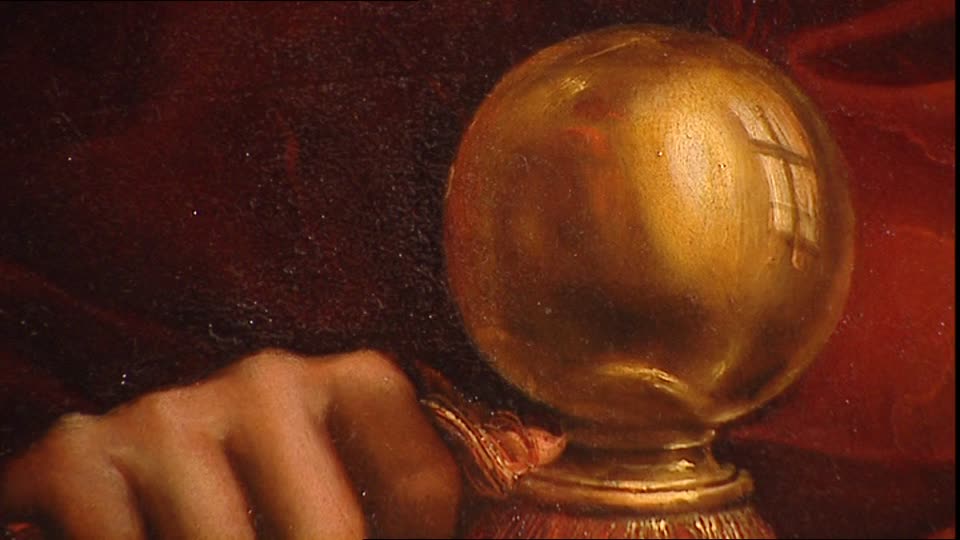 Il pomello della sedia riflette la scena che si svolge attorno. Ritratto di Papa Leone X de’ Medici di Raffaello Sanzio