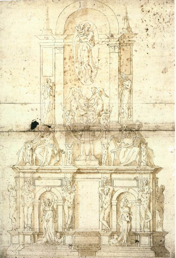 As for the Uffizi drawing, it is an original of mine and shows only the first and second register of the work but still refers to the second project for the tomb of Julius II.