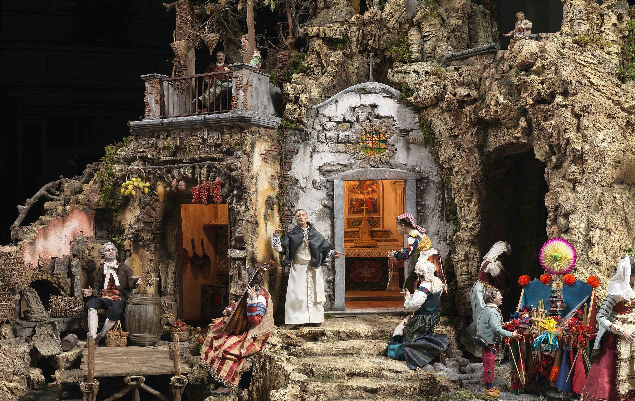 L’arte presepiale napoletana prevede la ricostruzione di un ambiente settecentesco partenopeo all’interno del quale si muovono i vari personaggi, tutti rigorosamente con il proprio significato.