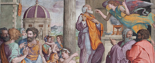 In the fresco of the Announcement of the birth of the Baptist in Zaccaria made in 1535 by Jacopino del Conte there is a portrait of me, most likely included because I too was part of this archconfraternity in his time.