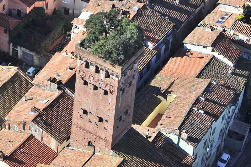 I Guinigi, ormai padroni della città, vollero ingentilire le loro severe dimore con una torre alberata, che divenne simbolo di rinascita, in cima al simulacro della loro signoria.