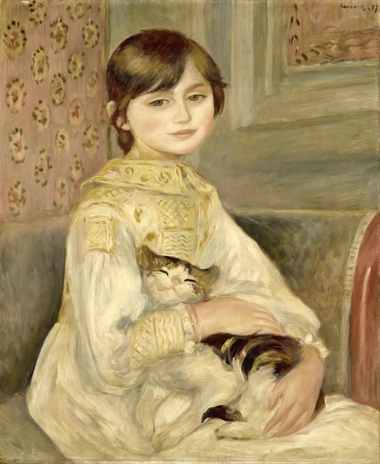 Before saying goodbye, I propose one last painting and it is the one made by Renoir whose subject is Juliet Manet and her big cat.