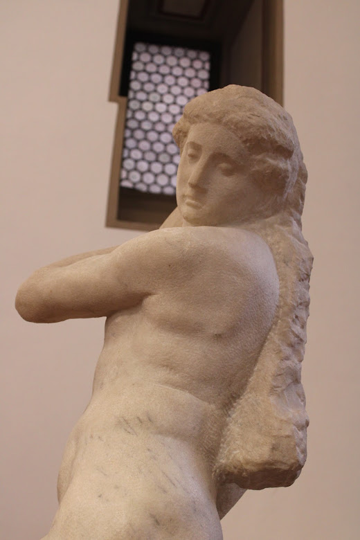 The unfinished face makes David Apollo assume a dreamlike and dreamy aspect. Who knows what expression his face would have once completed.