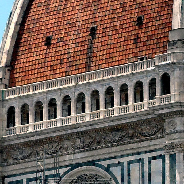 Purtroppo però il mio progetto fu accantonato a vantaggio di quello proposto da Baccio d’Agnolo. Fra il 1514 e il 1515 riuscì a portare a termine il ballatoio solo sul lato meridionale del tamburo con tutte quelle colonne in marmo bianco, oltremodo pesanti.