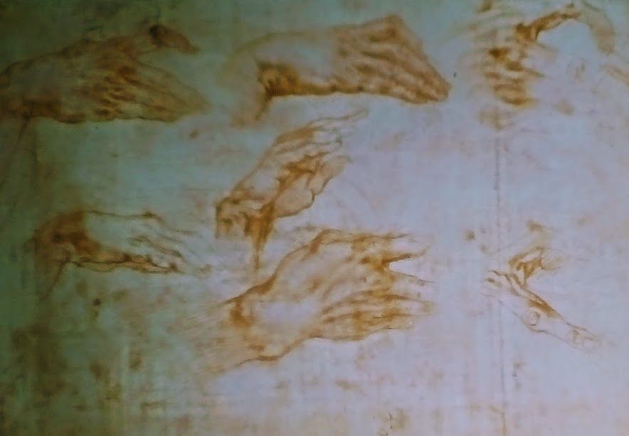 Studiai a lungo la posizione della mano destra portata al centro del petto. Esiste un foglio conservato nel Gabinetto dei disegni e delle stampe degli Uffizi che mostra le diverse pose che avevo avuto modo di pensare prima di metter mano alla scultura.