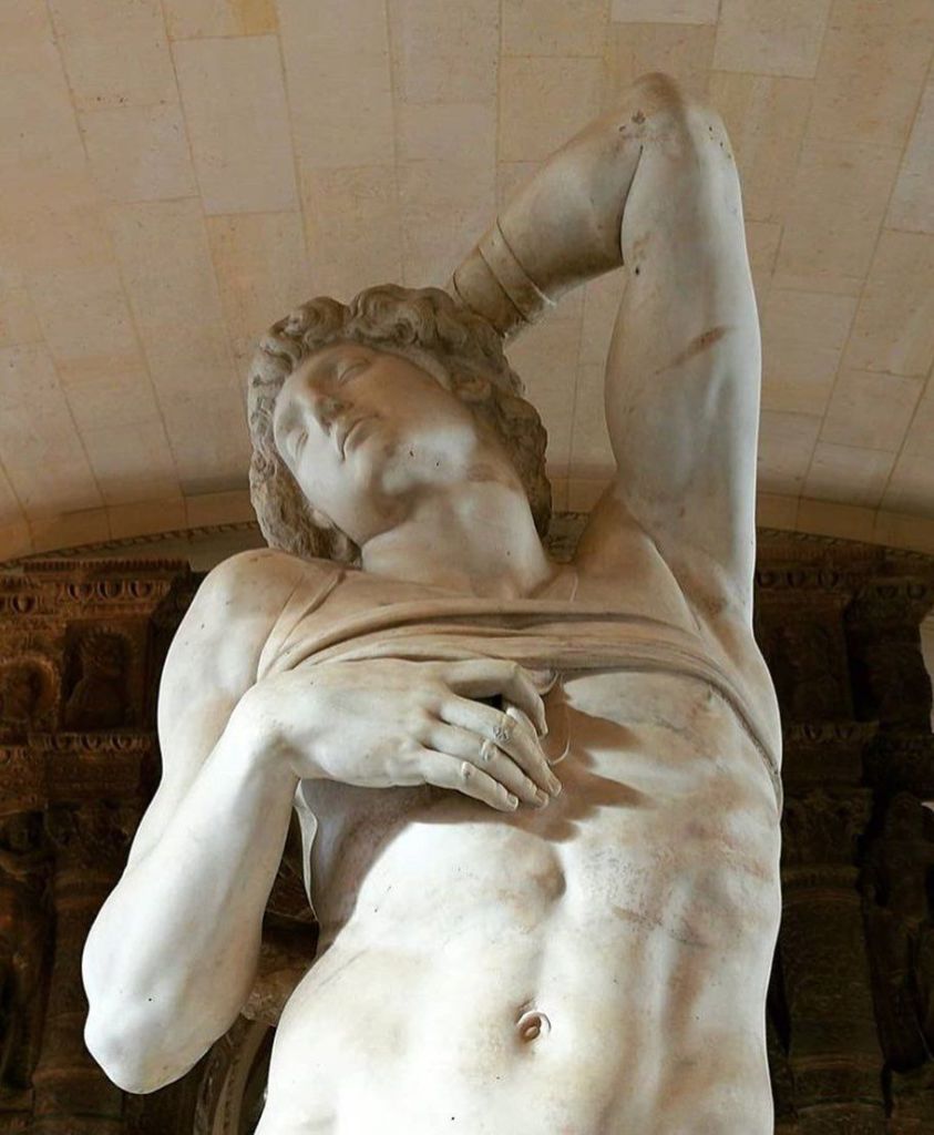Era lo Schiavo Morente, oggi conservato al Louvre... e no, non è come pensate: non fu un’opera sottratta da Napoleone e del come mai si trovi in terra straniera da lungi ve ne ho parlato QUA.
