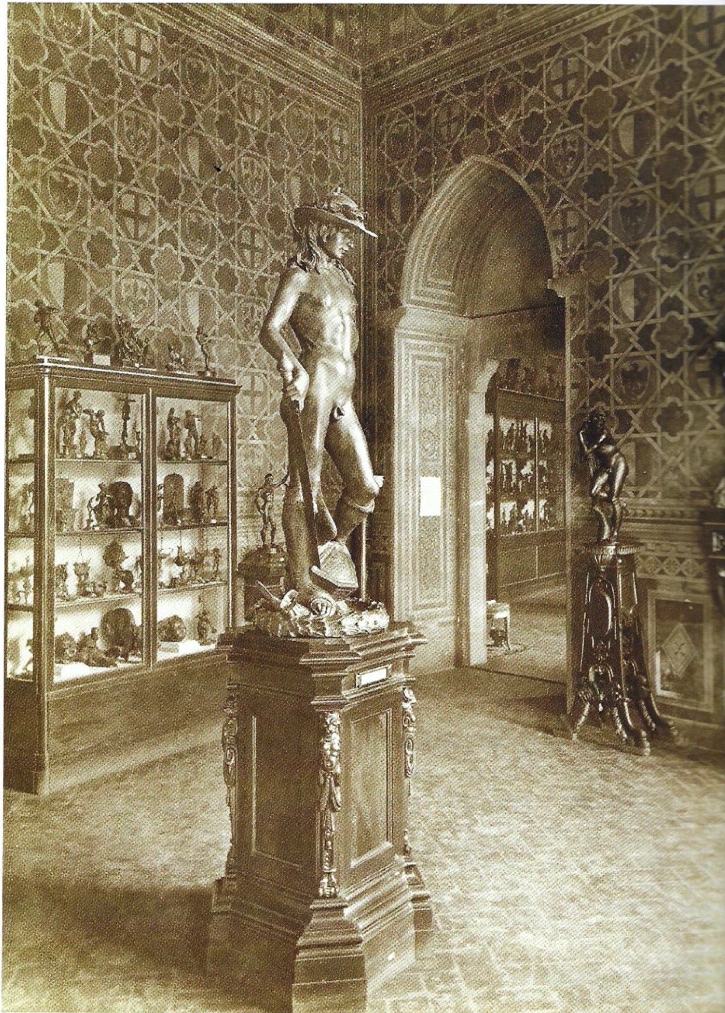 A few years later the David was moved to the courtyard as noted in the first documentary mention of the work, dating back to 1449. The sculpture is noticed right there during the important wedding celebrations between Lorenzo the Magnificent and Clarice Orsini.