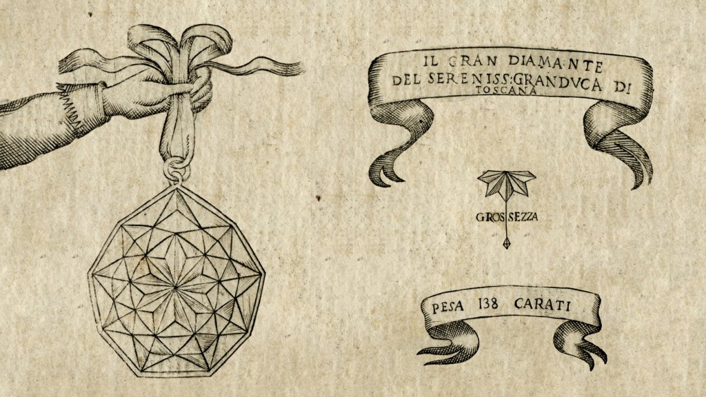 If you are curious to find out more about the Grand Diamond of Tuscany, until February 22, 2022 you can visit the current exhibition “The Florentine and the events of its purchase” at Palazzo Medici Riccardi. In addition to documents and paintings attesting the presence of the precious diamond in the court of the Grand Duke, you can admire its reproduction made by Paolo Penko’s goldsmith’s workshop in cubic zirconia up close.