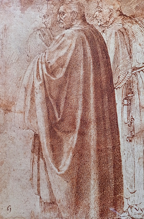 Il primo disegno riguarda lo studio di San Pietro, eseguito con due diversi inchiostri bruni che al momento appartiene alle collezioni della Graphische Sammlung di Monaco.