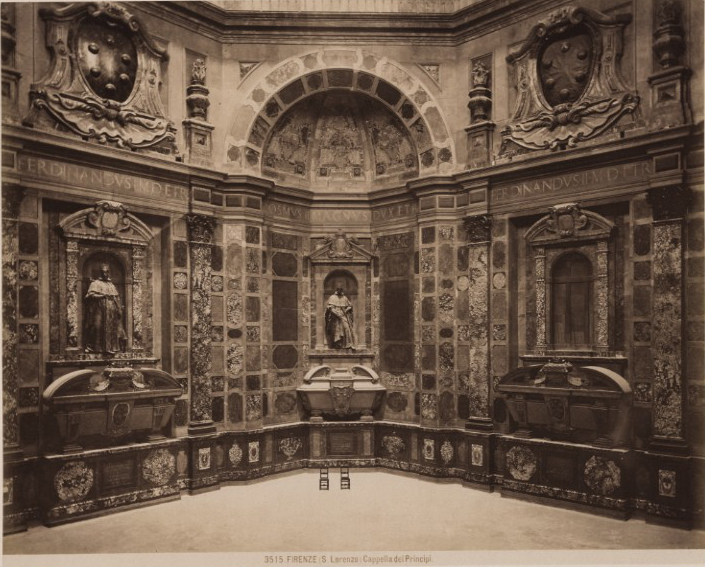 Entrando nella Cappella dei Principi si ha l’impressione di camminare su un tappeto di marmo di straordinaria fattura. La superficie ha una larghezza di oltre trenta metri e una forma ottagonale.