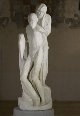 The Pietà Rondanini in fact still shows the transition between two different projects. The first project probably involved the presence of a figure or perhaps two to support the dead Christ with a vigorous body.