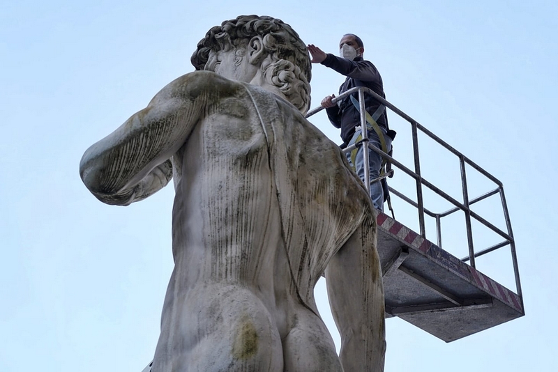 Vaclav Pisejc is a Czech citizen already known by the authorities for having committed similar acts against works of art. At around 8 pm on 11 March he climbed over the hedge of the arengario and, once in front of the David, set fire to the black cloth. A security guard on duty at the Loggia dei Lanzi together with a municipal agent immediately blocked the man while other officers on the spot proceeded to extinguish the flames with fire extinguishers.