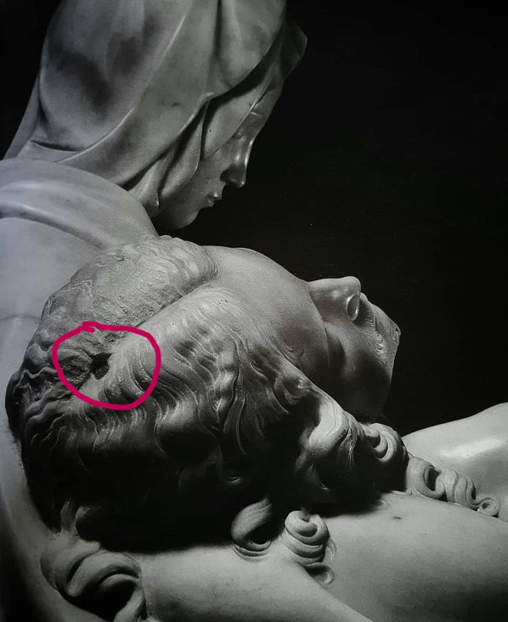 Pietà Vaticana: i fori sul capo della Vergine e del Cristo