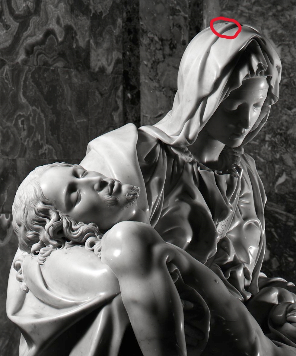 Pietà Vaticana: the holes on the head of the Virgin and Christ