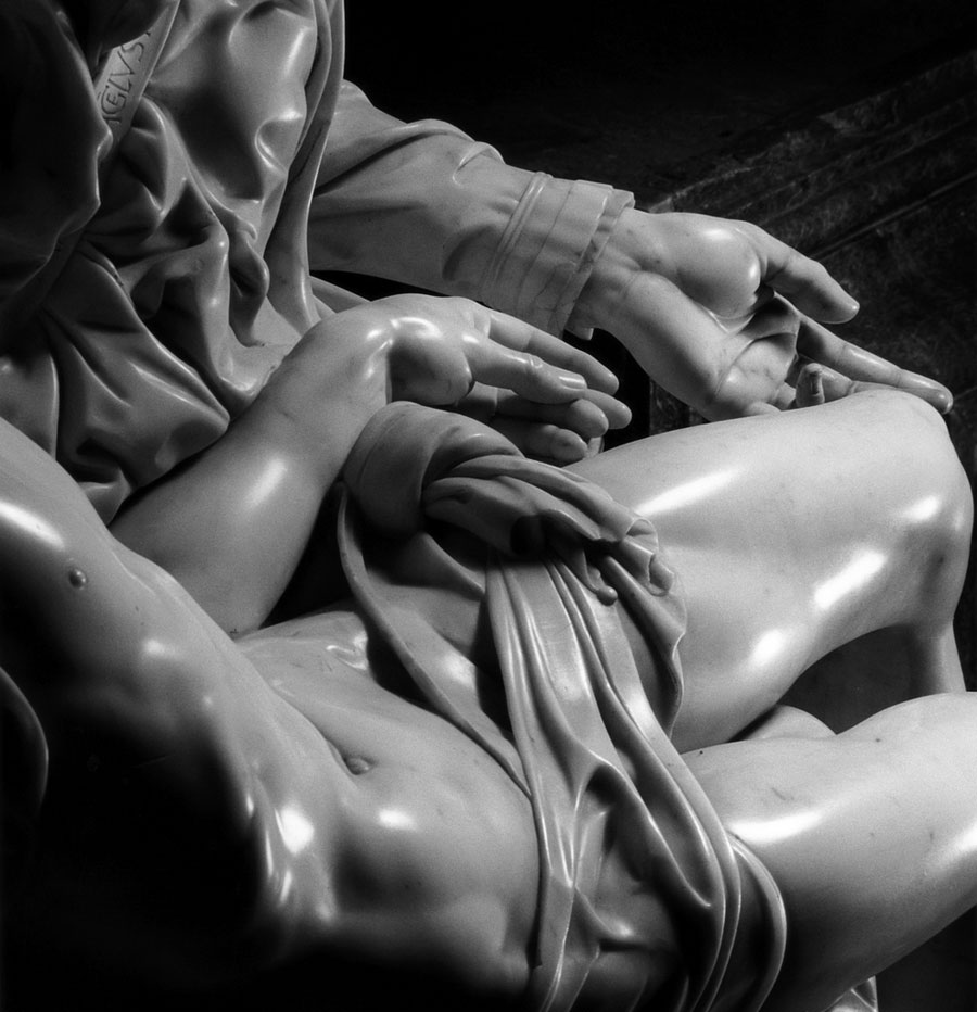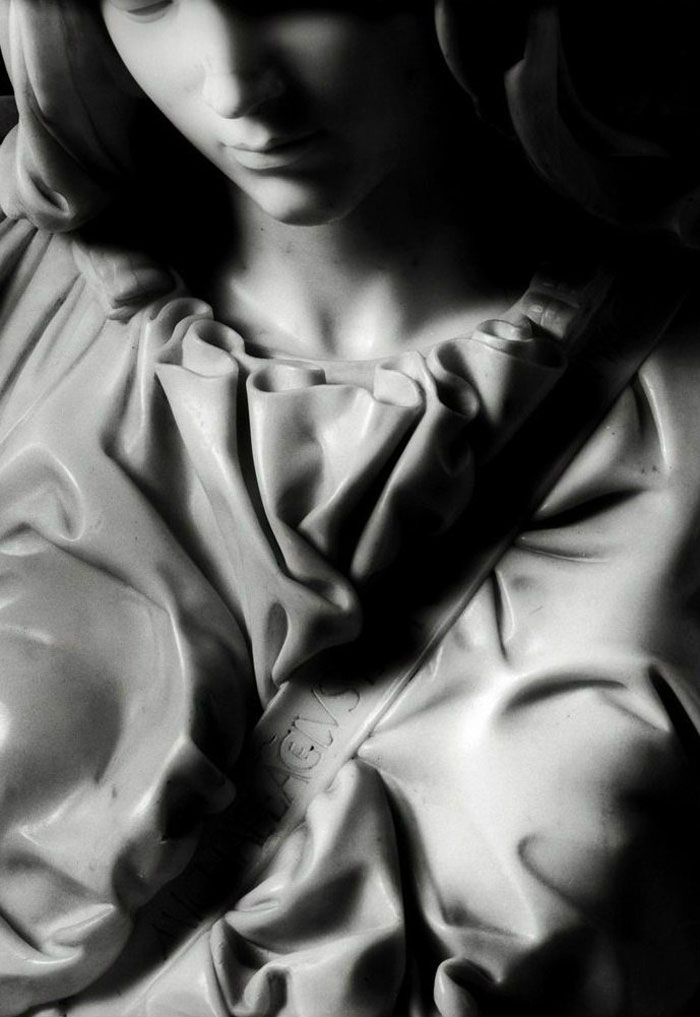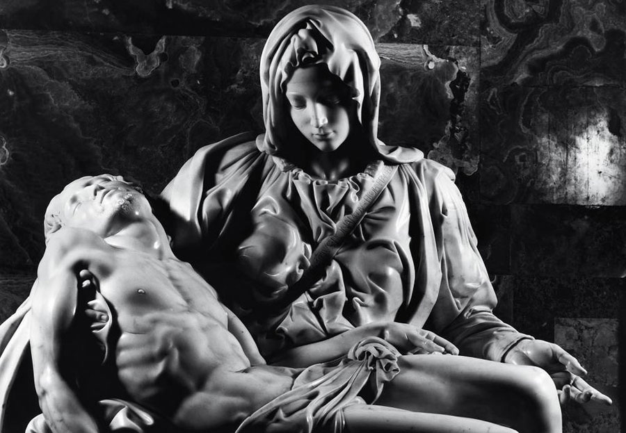 Rese ancora più vive da un uso magistrale del bianco e nero, le foto che ha realizzato della Pietà Vaticana tolgono il fiato: sembrano un omaggio a metà fra lo spirituale e il materiale.