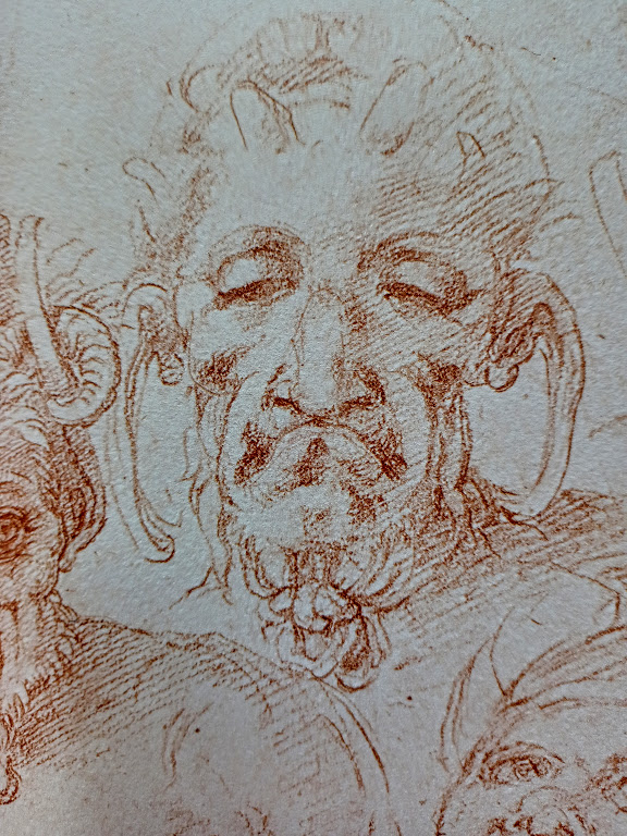 Il foglio che vi propongo oggi è assai curioso. Sulla carta sono state tracciate nove teste di cui tre sono satiri copiati da originali miei.