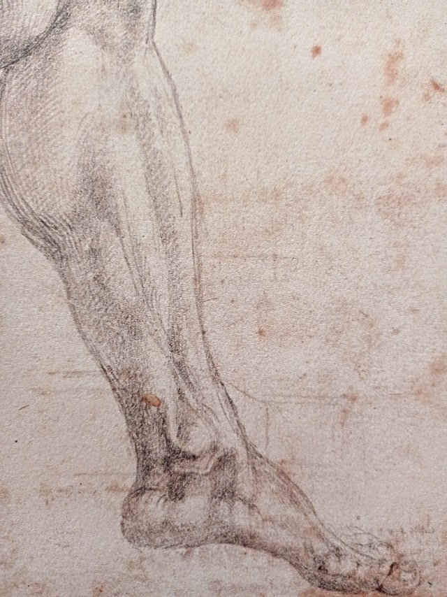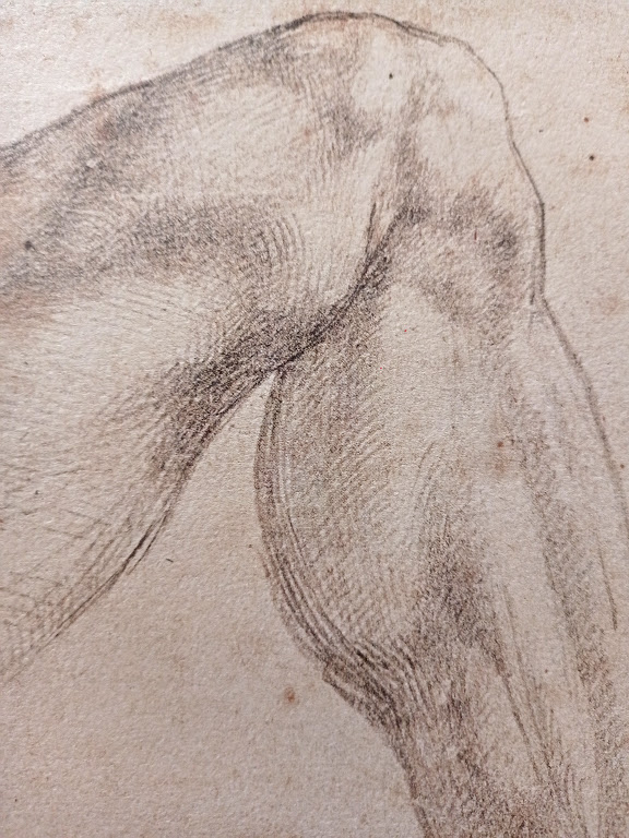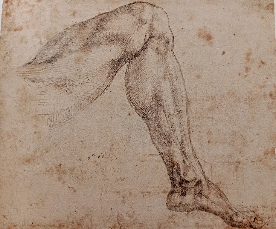 It was around 1524 when I traced this masterful modeling of a leg in black charcoal on paper, carefully defining the muscular and bony parts, separating them adequately from the fleshy ones.