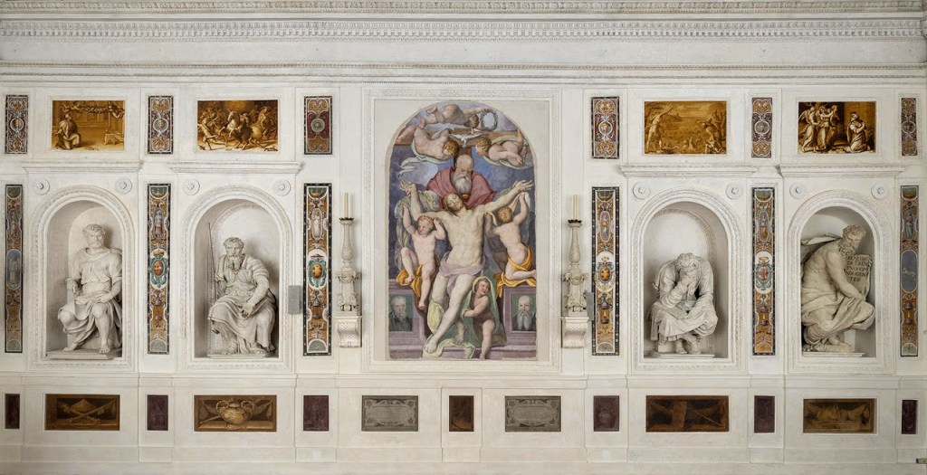 The most famous artists of the time gathered in this chapel for the annual meetings of the Academy or to celebrate the Four Crowned Saints, patrons of architecture. This chapel from the very beginning also welcomed the mortal remains of those artists who wanted to link their name to the Academy such as my friend Cellini, Pontormo, Bartolini and even Rodolfo Siviero, the secret agent at the service of the artistic heritage. Italian.