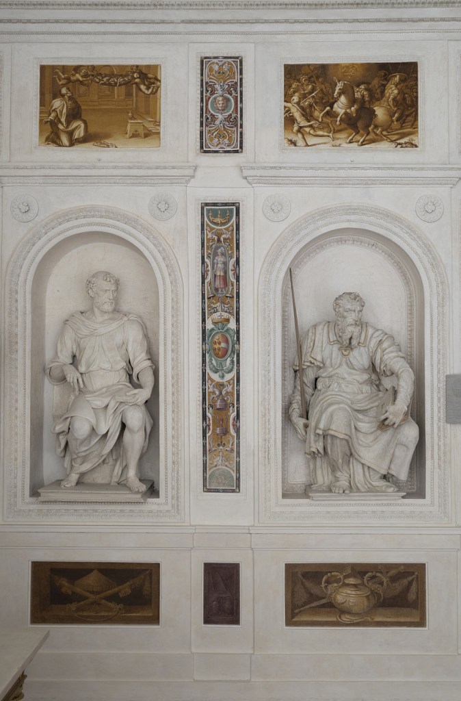 The first was carried out with the Napoleonic suppression and the transformation of the room for private use by Bishop Eustachio de Osmond with the closing of the entrance and the relocation of the altar below the fresco by Vasari. The second, on the other hand, was carried out with the flood of 1966 which resulted in various damage to the base of the smaller frescoes and to the lower part of the sculptures present.