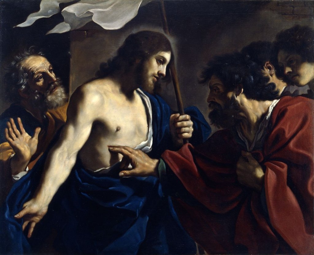 Giovanni Francesco Barbieri, chiamato Guercino fin da bimbetto perché da bambino si fece male a un occhio rimanendo per il resto della vita strabico, dipinse una mirabile Incredulità di San Tommaso a Bologna nel 1621 su commissione del cavaliere Bartolomeo Fabri.