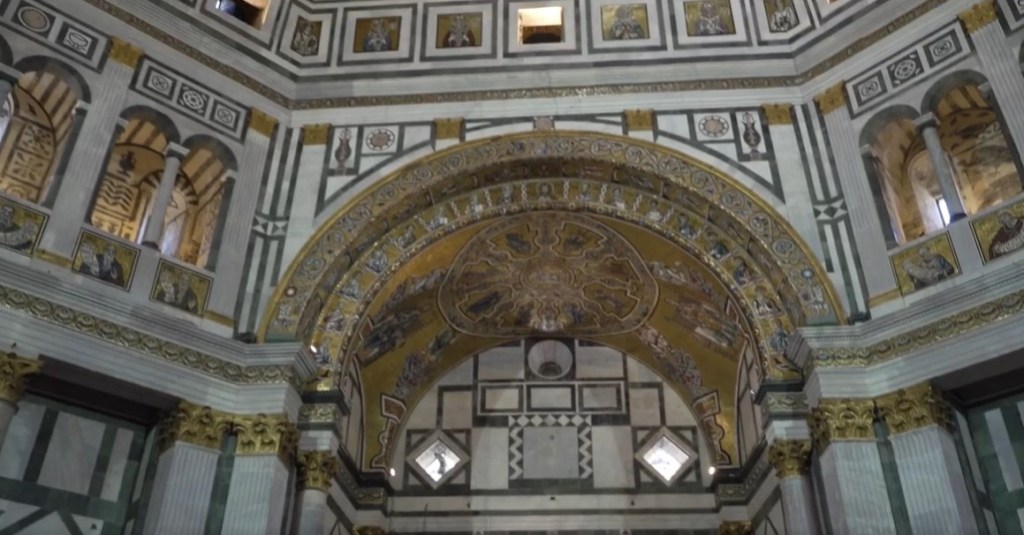 Liberato dai ponteggi che ne ostacolavano la vista completa, il Battistero di Firenze mostra ai visitatori i mosaici parietali e quelli che rivestono la volta e le pareti dell’abside.