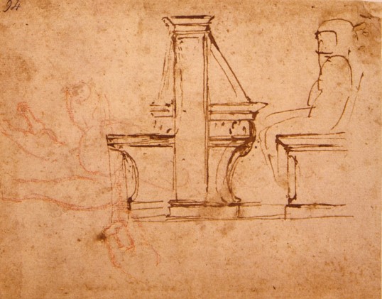 I presumably made the drawing in question in 1524 but the 88 linden and pine plutei were assembled and carved when I was now in Rome. I entrusted their construction to Battista del Cinque and Ciapino but those counters so worked required more team work to shorten the execution times.