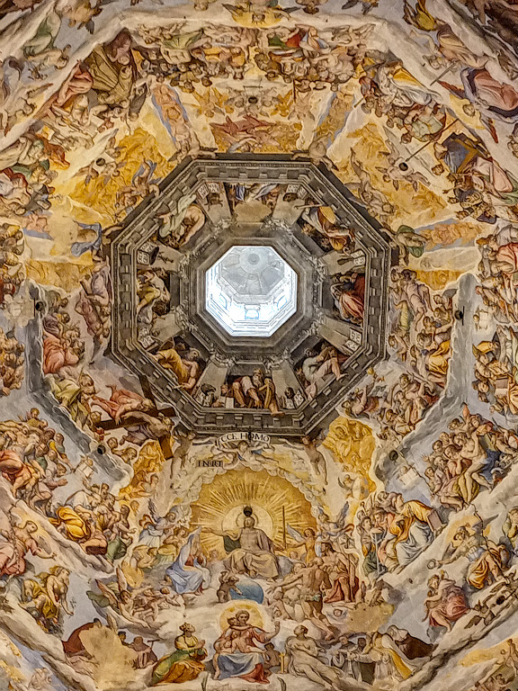 The large fresco covers over 3,600 square meters but originally, according to the wishes of Brunelleschi, the interior of the dome should have been covered in mosaic.