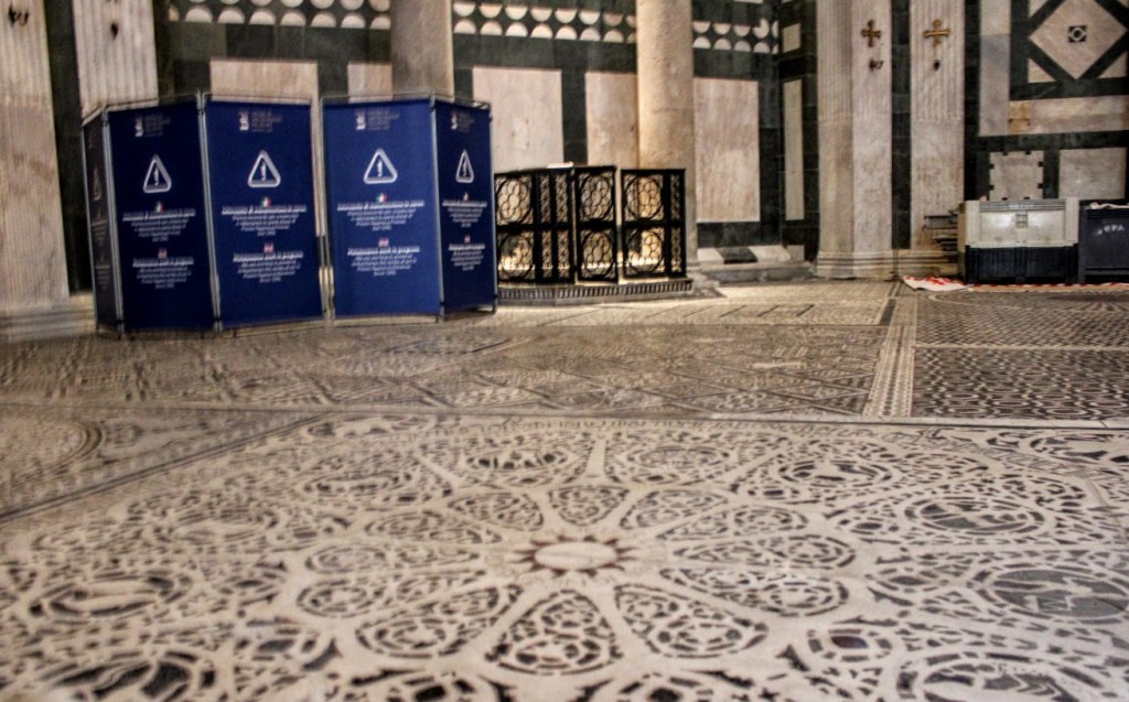 Insomma, dopo aver guardato il pavimento così decorato bisogna rivolgerci alle insigni cose del cielo. E’ il desiderio di eternità e l’invito a contemplare la grandezza del creato che ha spinto l’umanità a creare cose grandiose.