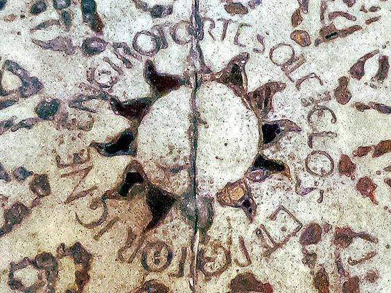 Cosa significa quella scritta? Riporta la dicitura EN GIRO TORTE SOL CICLOS ET ROTOR IGNE che tradotta in italiano corrente significa ECCO IO SOLE VOLGO OBLIQUAMENTE I CIRCOLI E SON VOLTO DAL FUOCO.