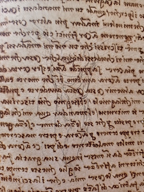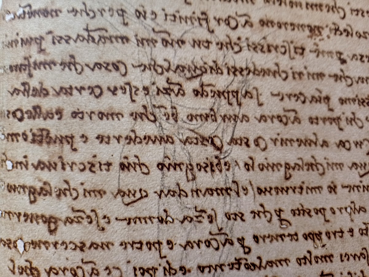 Se guardate bene vedrete dei veri e propri fori sulla carta in corrispondenza di alcuni tratti della grafia: ebbene, l’inchiostro con il tempo ha letteralmente consumato il foglio.