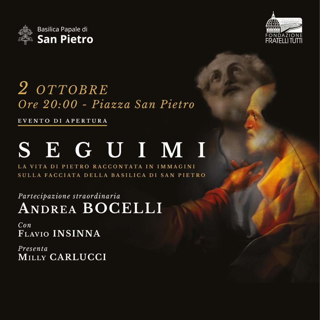 The first event open to all will be the projection on the facade of St. Peter’s Basilica designed by Maderno of “Seguimi. The life of St. Peter ”. This is a video mapping that will be proposed for the first time ever at 9 pm on 2 October 2022.