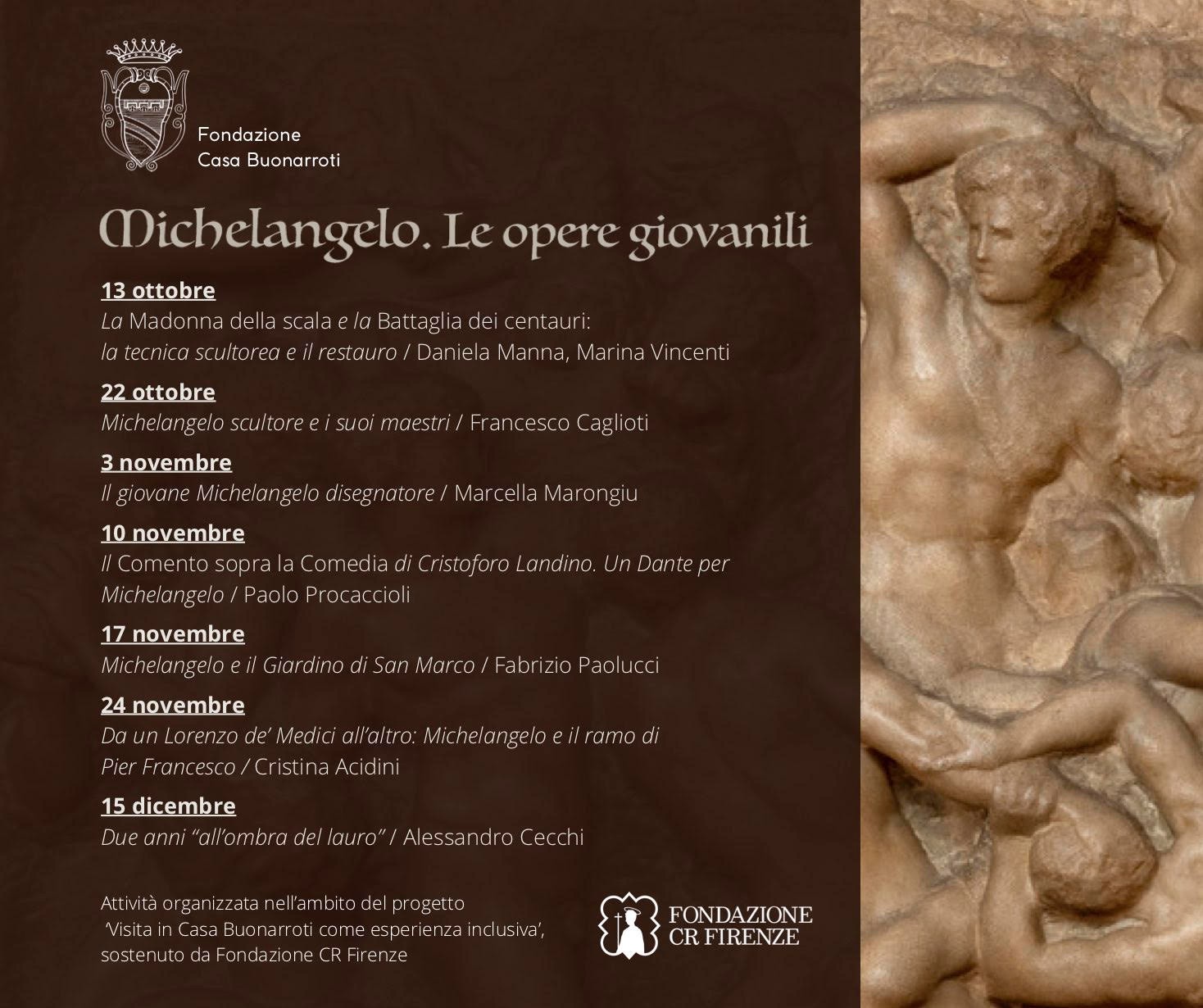 Soon a new and interesting series of conferences will begin at Casa Buonarroti dedicated to my early masterpieces.
