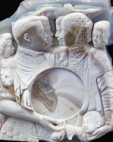Termina il percorso espositivo il grande cammeo con i ritratti di Cosimo I de’ Medici, Eleonora di Toledo e i figli, realizzato da Giovanni Antonio de’ Rossi.