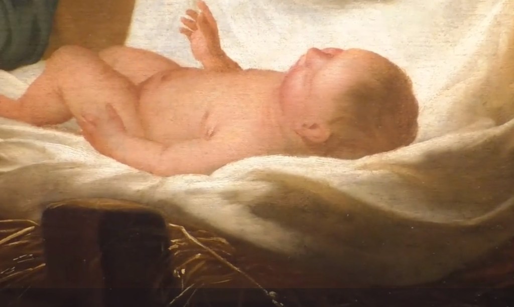 Addirittura la luce irradiata dal Neonato lumeggia d’oro i fili di paglia che spuntano dalla mangiatoia. Mano a mano che ci si allontana dalla visione del Bambino, la luce diventa più fievole fino a diventare buia.