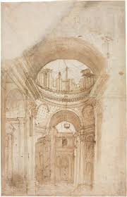 Il disegno appartenente al Gabinetto Disegni e Stampe degli Uffizi mostra la veduta della crociera di San Pietro dal braccio meridionale.