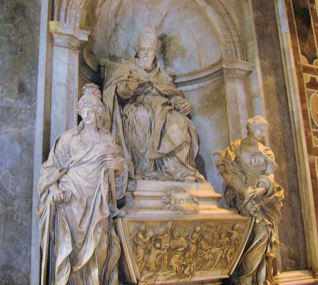Algardi was able to work on two important commissions for St. Peter’s Basilica: the altarpiece with the meeting of Pope Leo I and Attila sculpted between 1643 and 1653 and the Tomb of Leo XI in white Carrara marble. While the prevailing fashion of the moment provided for the use of polychrome marbles, Algardi, making his own mind preferred by far opting to use exclusively white marbles.