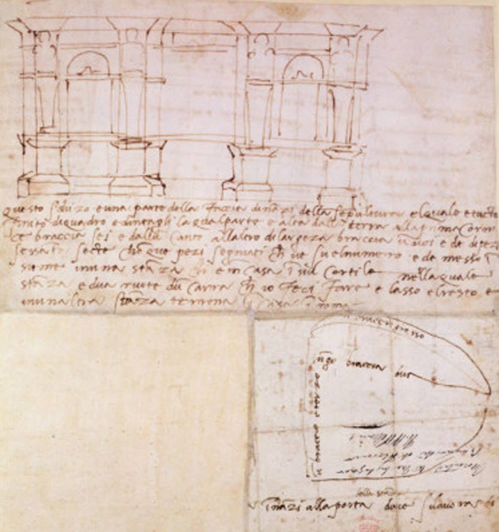 In my graphic production the way I had of using and recycling the still reusable paper is very evident. If from a letter, a sketch or a more finished drawing there was still a piece of paper left over that was still good for use, I would cut it out and perhaps write a minute on it or sketch something I had in mind so as not to forget it. Recycled and cut paper from who knows which larger sheet is also the one on which I wrote a short letter from Tommaso de’ Cavalieri in 1533.