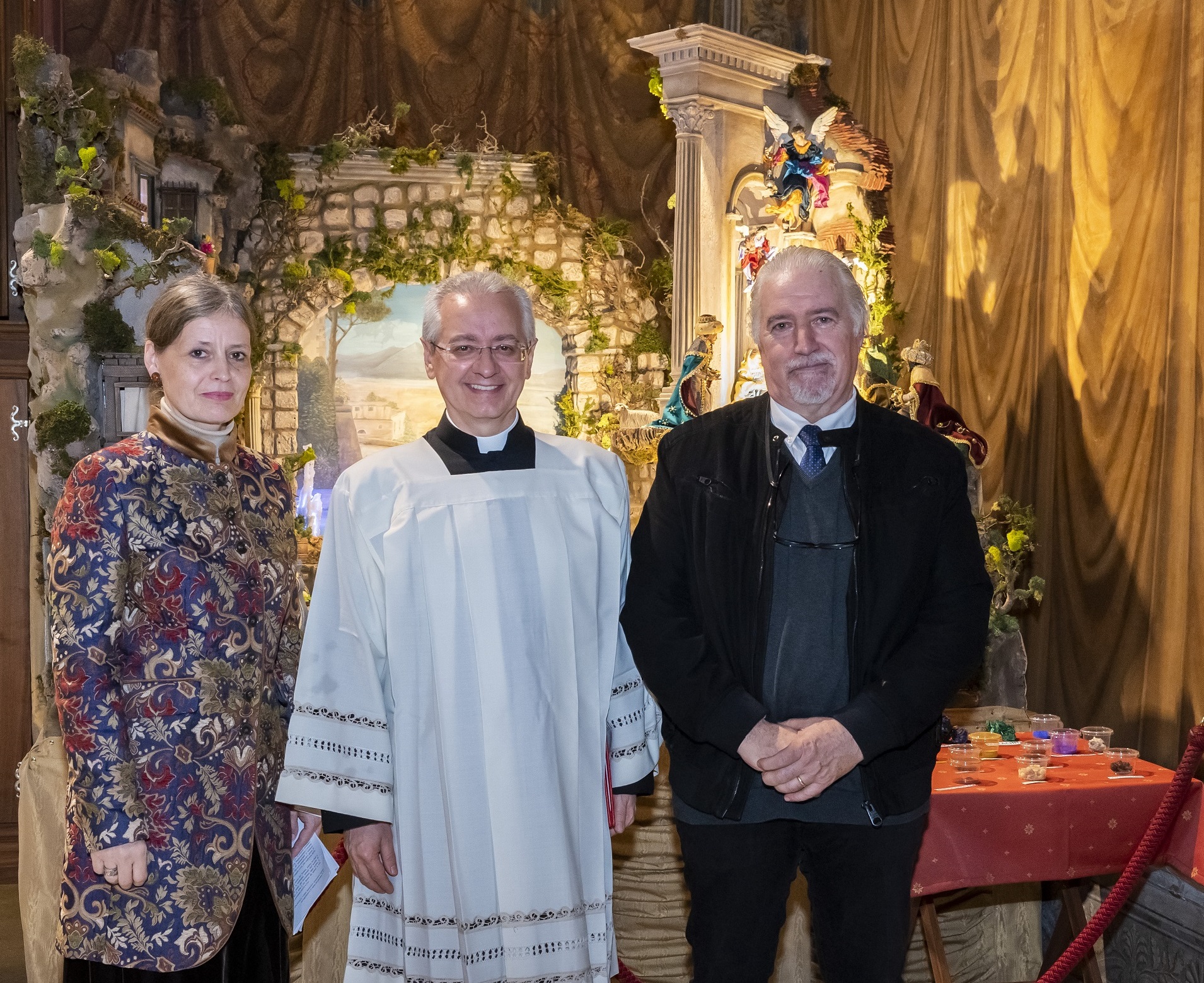 To make the nativity scene set up in the heart of the Vatican Museums even more precious, precious precious minerals have been inserted, such as a rare jasper found in the islands of the Tuscan archipelago and worked by Passeri, a beautiful series of azurites found in the Alnif mine in east of Bou-Azzer in Morocco and desert roses and a rare crystallized chalcedony stalactite found five hundred meters below sea level in a cave in India.
