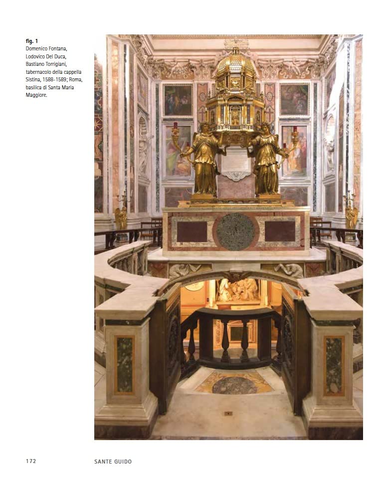 Nei cantieri di committenza papale e reale (a Roma, palazzo Lateranense, la Scala Santa, l’obelisco Vaticano in piazza San Pietro e il palazzo Apostolico ecc.; a Napoli, il palazzo Reale, a Salerno e Amalfi, le cripte delle cattedrali, ecc.) al lavoro di muratori, vetrai, stagnai e fabbri si sovrappone l’opera delle botteghe artistiche di pittori, scultori, bronzisti, stuccatori, indoratori, incisori: di questa straordinaria coralità, che unisce le più diverse competenze, il volume offre un’approfondita e sfaccettata disamina.