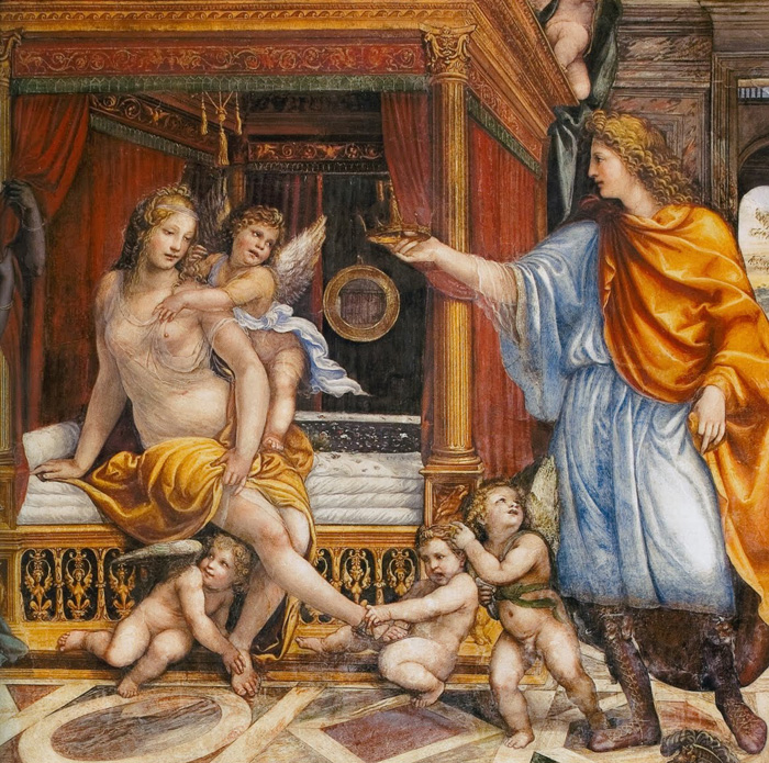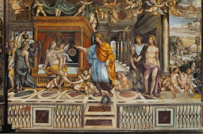 The artist from Vercelli had been called to Rome by Agostino Chigi between 1516 and 1517 to fresco his bedroom with the stories of Alexander the Great.