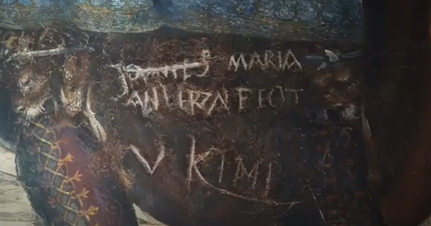 As the restorer himself explains, the signature was probably affixed with a knife by the mercenary who was certainly not illiterate and had a certain grace in his handwriting.
