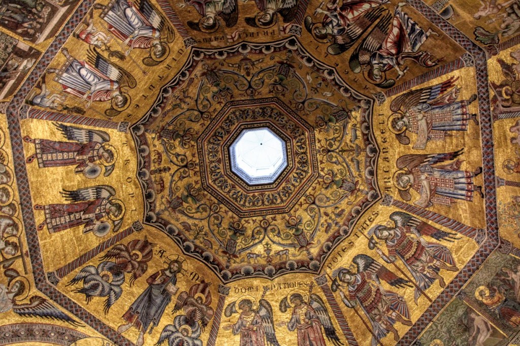 The mosaic covering of the dome was probably carried out starting from 1270 and is divided into eight segments. The mosaic on a gold background required years of work before it was completed. It is probable that Venetian workers were employed supported by local ones.
